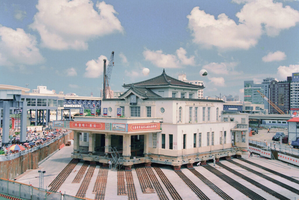 圖四/高雄舊火車站興建於 1941 年,為日治時期最後一個完工的車站。此圖為 2002 年 8 月 16 日記錄高雄舊火車站遷移的景象。(影像來源/國家文化記憶庫 2.0)