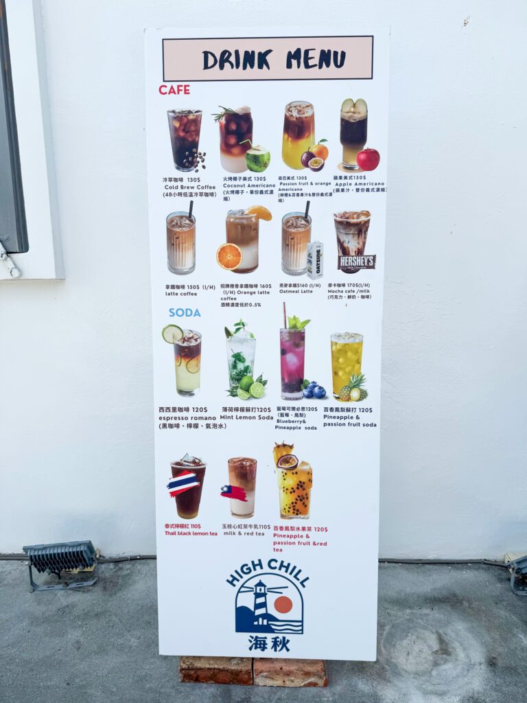 為了迎接來自世界各地的旅人與全齡家庭,海秋跳脫了精品咖啡店的單一框架,將市集暢銷的果香蘇打、國際遊客喜愛的摩卡咖啡移植上山。透過風味的轉譯,讓每一位訪客在欣賞廣闊海景、回望百年時光流轉的同時,也能夠創造微小而私人的味蕾記憶。
